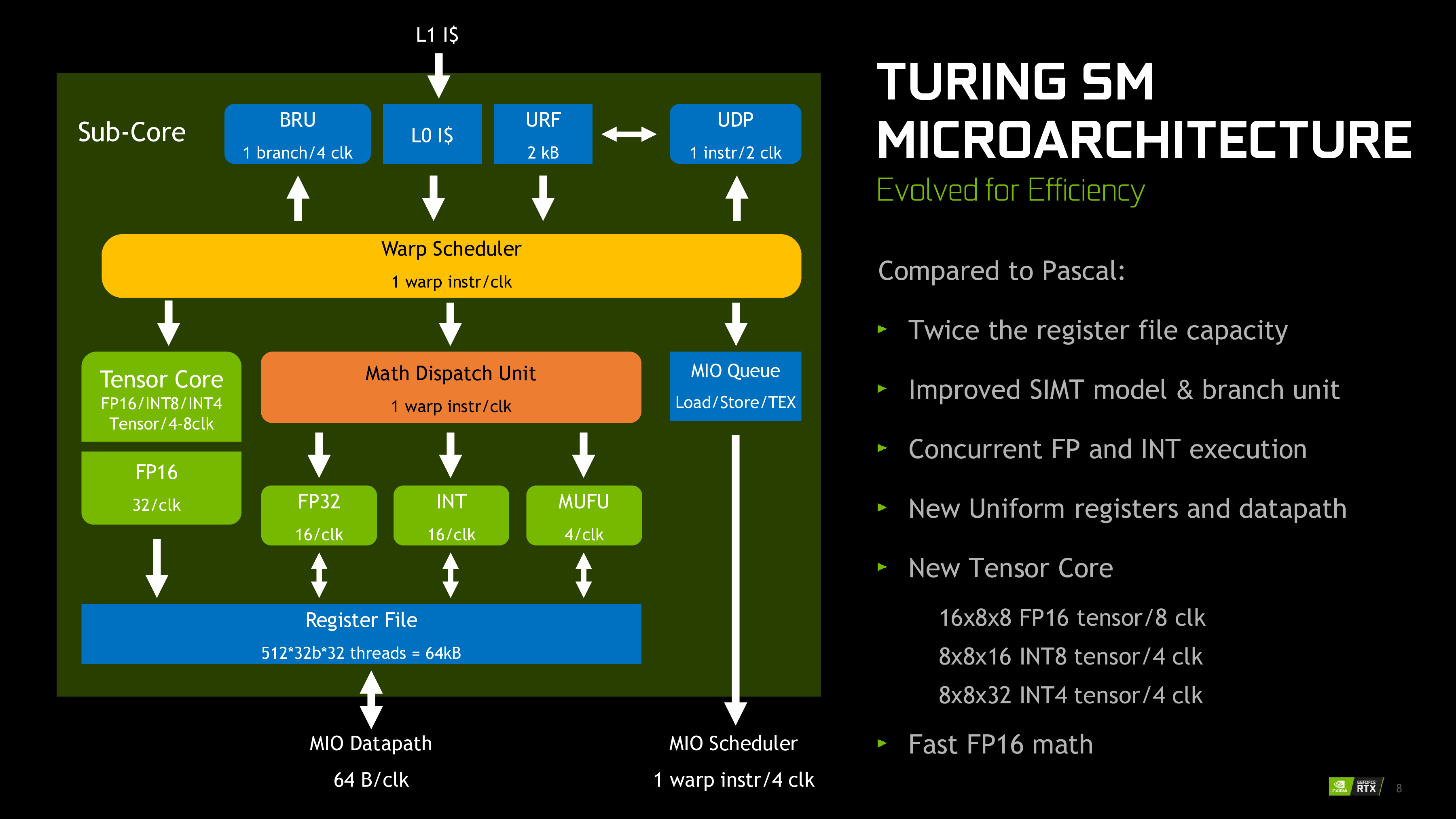 - 16x INT units: Handle logic operations and integer arithmetic (
